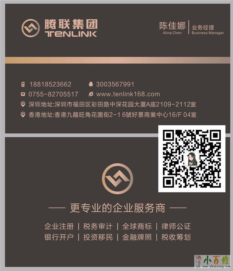 深圳市腾联商务顾问有限公司主要从事美国公司,香港公司,英国,开曼,BVI,新加坡等公司注册,开户等一系列商务服务,分部腾联商务秘书(香港)有限公司设址于香港旺角,由香港执业会计师及高级企业管理顾问组成,香港业务一级代理,持有香港秘书照小百姓网www.xbaixing.com。